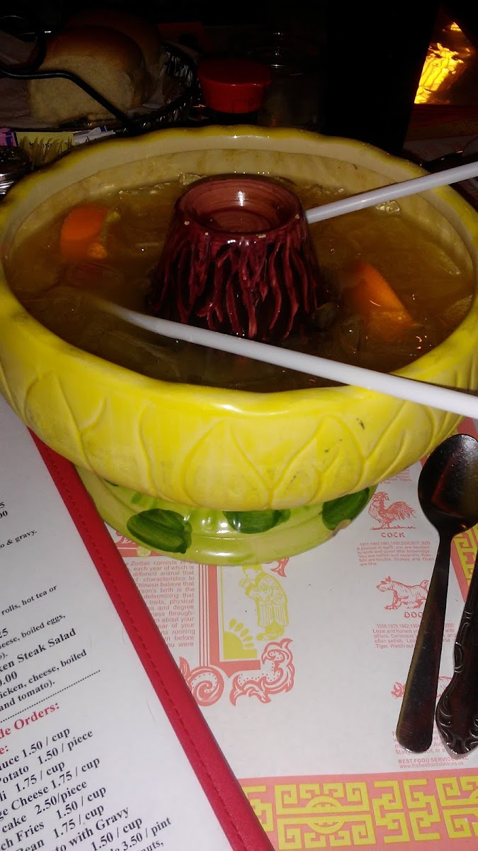 Medium spicy. Hot boiled lamb, Chinese cabbage, leek, celery with Szechuan sauce. Topped with boiling oil.